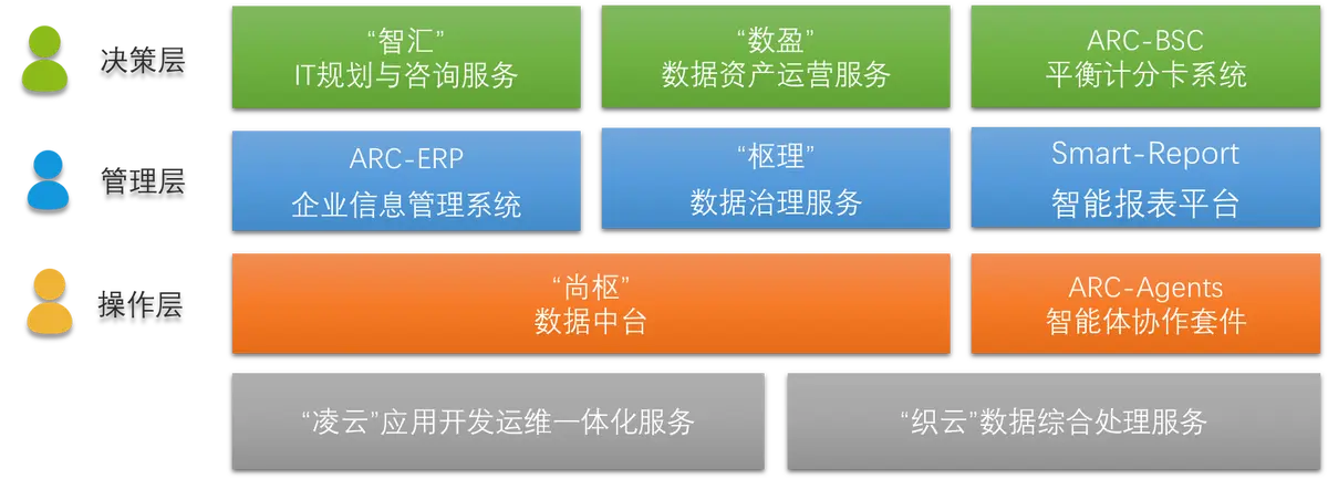 在決策層,“智匯”IT規(guī)劃與咨詢服務(wù),憑借專業(yè)團(tuán)隊(duì)對(duì)行業(yè)趨勢(shì)和技術(shù)生態(tài)的深度洞察,為企業(yè)量身定制契合發(fā)展戰(zhàn)略的IT架構(gòu)藍(lán)圖,明晰數(shù)字化路徑;“數(shù)盈”數(shù)據(jù)資產(chǎn)運(yùn)營(yíng)服務(wù),挖掘企業(yè)數(shù)據(jù)價(jià)值,將分散數(shù)據(jù)轉(zhuǎn)化為可運(yùn)營(yíng)、能創(chuàng)造效益的資產(chǎn),驅(qū)動(dòng)業(yè)務(wù)創(chuàng)新;ARC - BSC平衡計(jì)分卡系統(tǒng),以戰(zhàn)略為導(dǎo)向,從財(cái)務(wù)、客戶、內(nèi)部流程、學(xué)習(xí)與成長(zhǎng)等維度,量化指標(biāo)、監(jiān)控進(jìn)度,助力科學(xué)決策 。